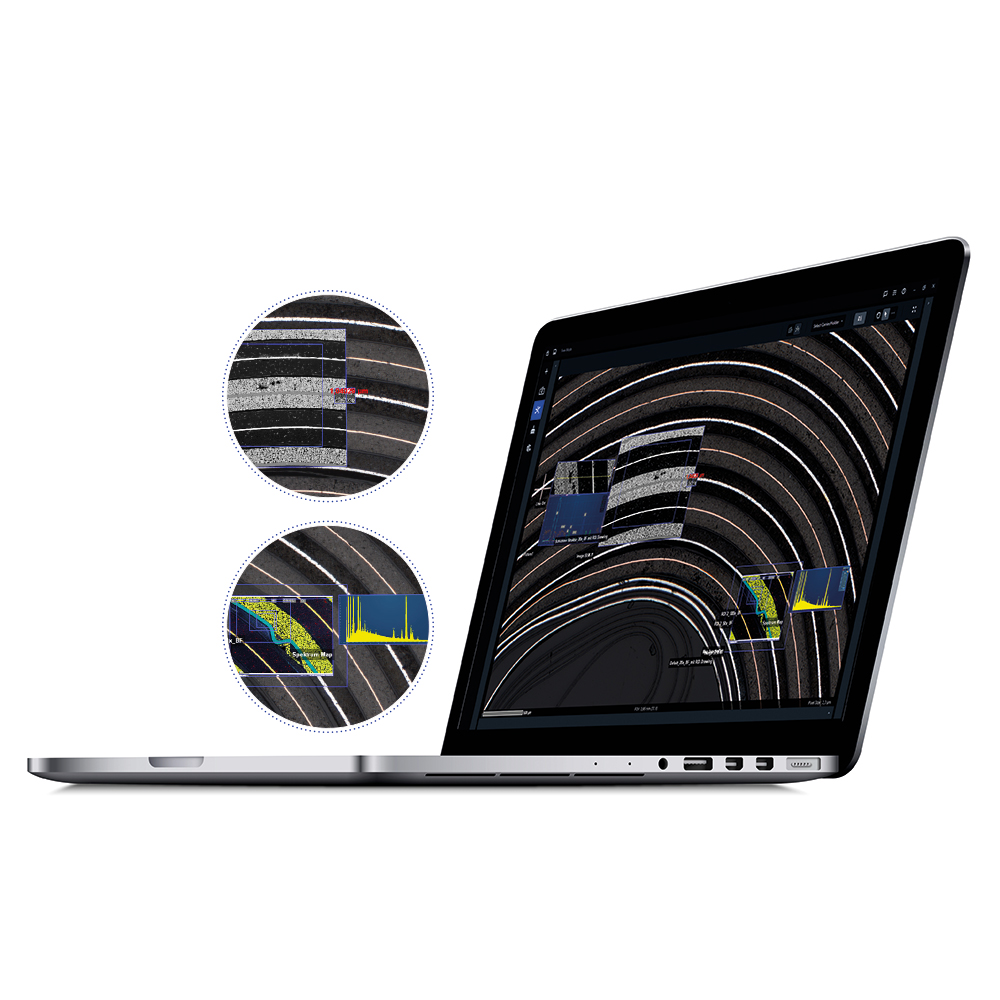 correlative image presentation from different microscope types (e.g. light and electron microscopes) in a connected map. This is highly beneficial for detailed investigation of large overview images, such as with battery cells.​ The module enables the import and correlation of non-image data such as EDS results. Compatible with the leading EDS system manufacturers.